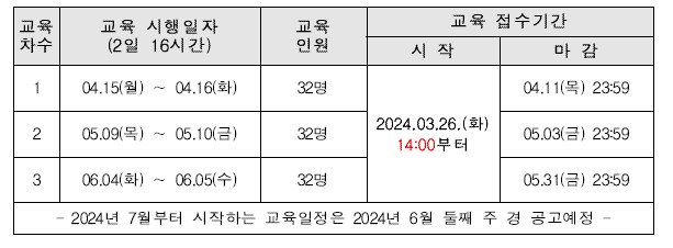 - 첨부파일 : 공고문 (교육일정, 교육인원 등 필수 참고사항 기재)