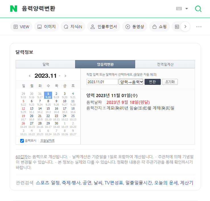 네이버에서는 음력양력변환 서비스를 제공합니다.