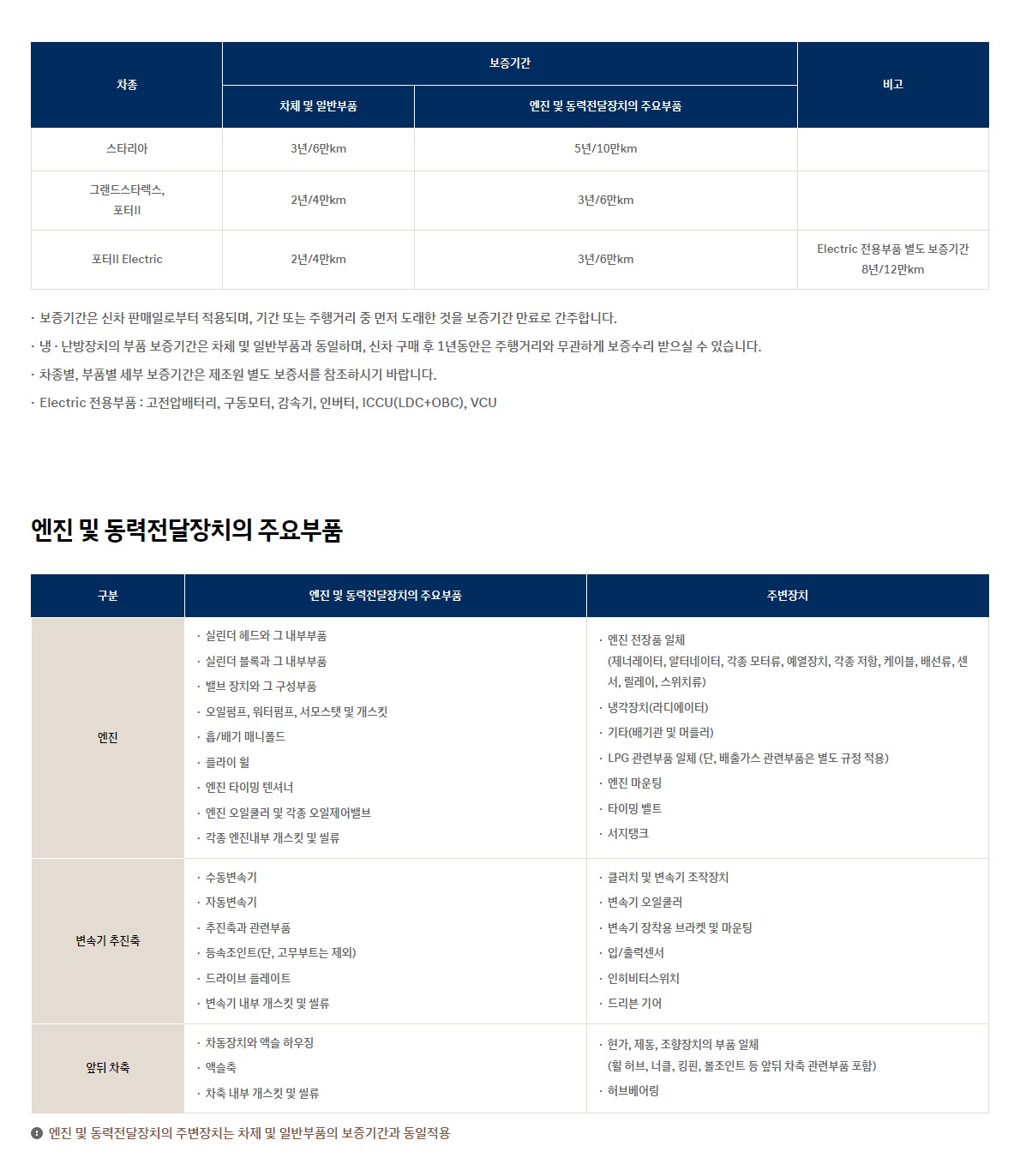 상용차량 현대 자체 보증기간 참고 바랍니다.