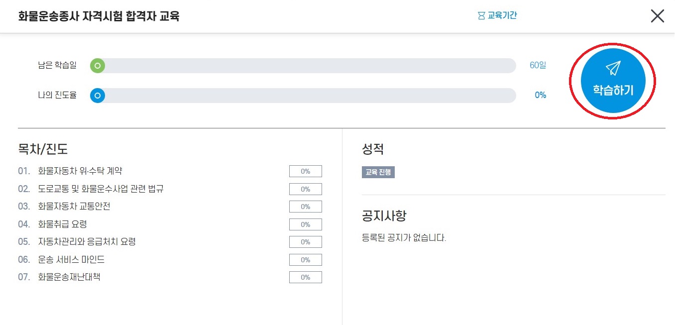 화물운송자격증 필기합격 후 법정 온라인 교육을 8시간 이수 하셔야 자격증 발급을 받을 수 있습니다.
